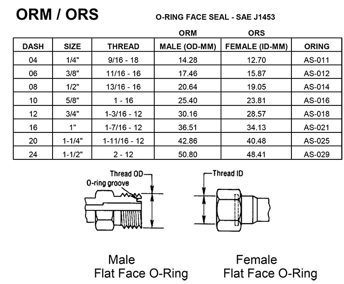 The solid male O-ring face seal fitting will mate with a swivel female O-ring face seal SAE J1453 fitting only.